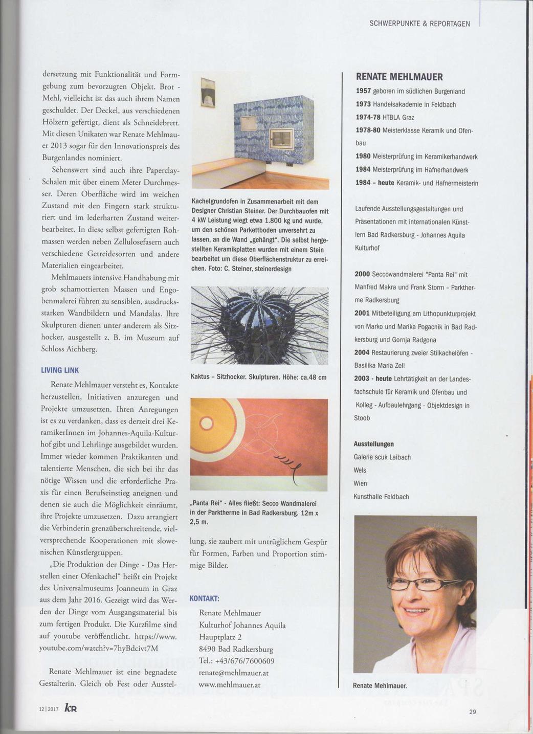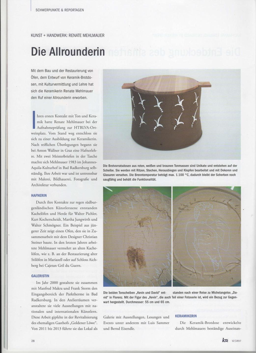 Bericht in der Keramischen Rundschau über Renate Mehlmauer Ausgabe 12/2017