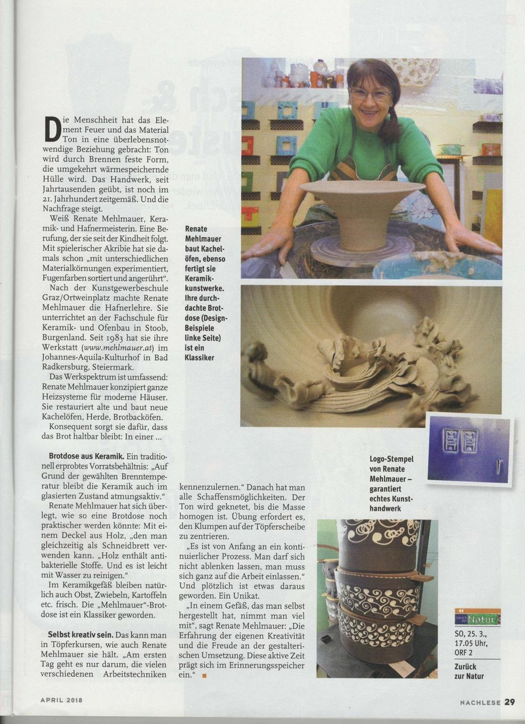 Bericht über Renate Mehlmauer in der ORF Nachlese Ausgabe 04/2018
